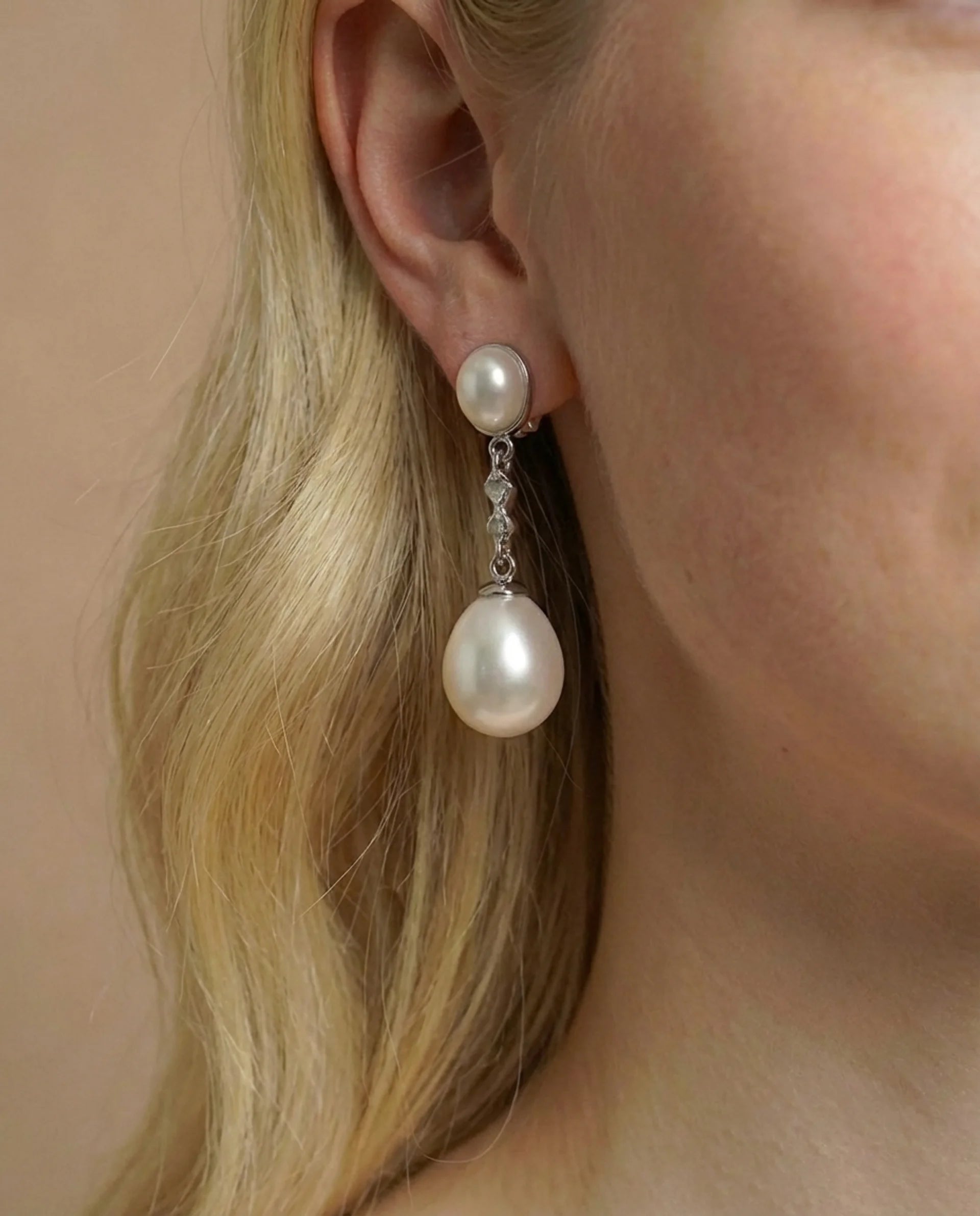 Nämä norsunluunväriset kaksihelmiset korvakorut on koristeltu kiiltävillä makeanvedenhelmillä, jotka roikkuvat elegantissa pisarakuviossa. Kiillotetusta sterlinghopeasta valmistetut korvakorut tuovat esiin luonnollisen kermanvalkoisen kiillon, joka tekee helmistä ajattoman kauniita.
